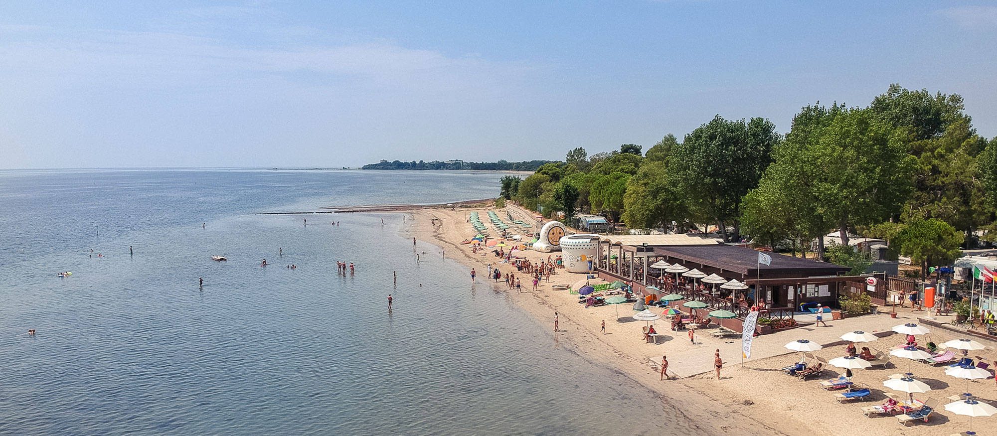 5 km od centra města Grado, zastávka autobusu naproti kempu, u soukromé pláže - vzdálenost od moře dle typu ubytování
