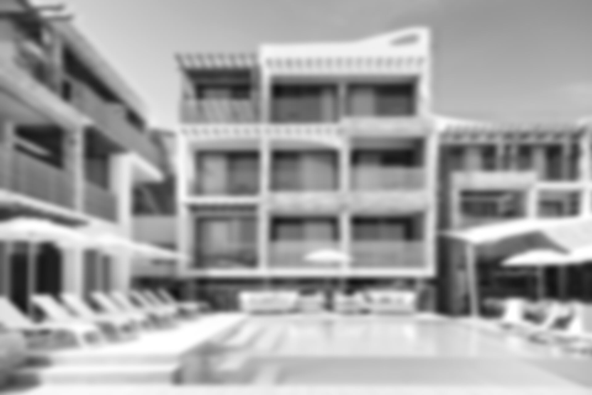 Vybavení a služby: recepce, výtah, venkovní parkoviště (omezený počet míst), bar/kavárna u bazénu (Sandalia Cafe), bazén s lehátky a slunečníky