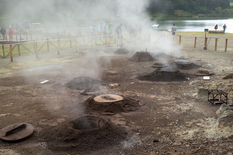 5. den: Vydáme se na cestu kolem laguny, kde se přímo ze země vytahují hrnce s hotovým obědem, do městečka Furnas. Ochutnáme tradiční cozido a vyzkoušíme koupání v termálním bazénu. Dopoledne vyrazíme do oblasti Furnas, kde je nejvíce cítit doznívající sopečná aktivita . Tato část ostrova je známá díky termálním pramenům a koupalištím. Naše pěší trasa povede tentokrát kolem laguny po příjemné lesní pěšině. Při obchůzce velké vodní plochy, poprvé v dálce uvidíme a brzy i ucítíme síru. Právě tady se na břehu jezera připravuje vyhlášené cozido , směs masa a zeleniny , která se uvaří zemským teplem. Podíváme se, jak se ze země vytahují hrnce s už hotovým obědem. Poté budeme pokračovat pěšky do lázeňského městečka Furnas a v některé z restaurací ochutnáme tuhle tradiční specialitu. Po obědě navštívíme krásný botanický park Terra Nostra . Na ploše 12,5 hektaru tu najdete sbírku několika tisíc druhů stromů a rostlin z různých koutů světa. Součástí zahrad je velký termální bazén. Voda má teplotu mezi 30 a 40 °C a díky obsahu železa má výraznou žlutohnědou barvu. Na závěr se ještě projdeme kolem říčního koryta, které nás dovede k  fumarolovému poli . Ze země tu vyvěrají horké plyny a gejzíry . Geotermální energie je vidět na každém kroku. Věřili byste, že ve vroucích vodách tu připravují i lahodnou kukuřici? A my toho budeme svědky.  Pěší trasa bude rozdělena na více etap, celkový čas: 2–3 hodiny / délka: 8,5 km / převýšení: zanedbatelné