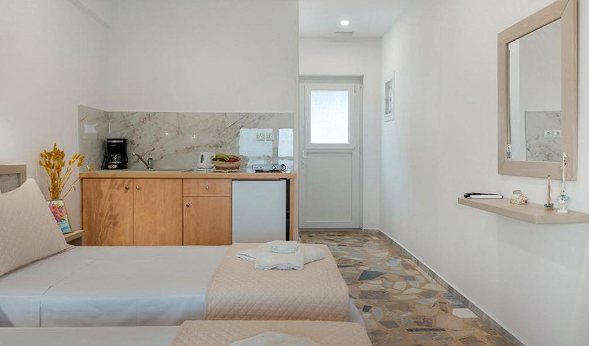 Apartmánový dům Niki se nachází v bezprostřední blízkosti oblíbeného domu Mary & Popi v klidné části letoviska Panormos, 90 m nad oblázkovo-písečnou pláží Platis Yialos. Ubytování nabízí krásný výhled na moře a na západ slunce. Dům je situován přibližně 1,5 km od centra letoviska Panormos, 600 m od nábřeží Linaria a 700 m od letoviska Kantouni. Každé ráno přijíždí k penzionu pekař s čerstvým pečivem a velkým sortimentem slaného a sladkého pečiva. Pláž je přístupná po schodech, z tohoto důvodu ubytování nedoporučujeme klientům s omezenou pohyblivostí. Doporučujeme klientům, kteří vyhledávají klidnou dovolenou s krásným koupáním. Vybavení: Wi-Fi zahrada za poplatek: vodní sporty na pláži Benefity hotelu: panoramatický výhled Benefity hotelu 2: rodinná atmosféra Benefity hotelu 3: nová studia a apartmány Benefity hotelu 4: vlastní stravování Benefity hotelu 5: klimatizace a Wi-Fi zdarma Benefity hotelu 6: klidná lokalita Doplnění k... Celý popis