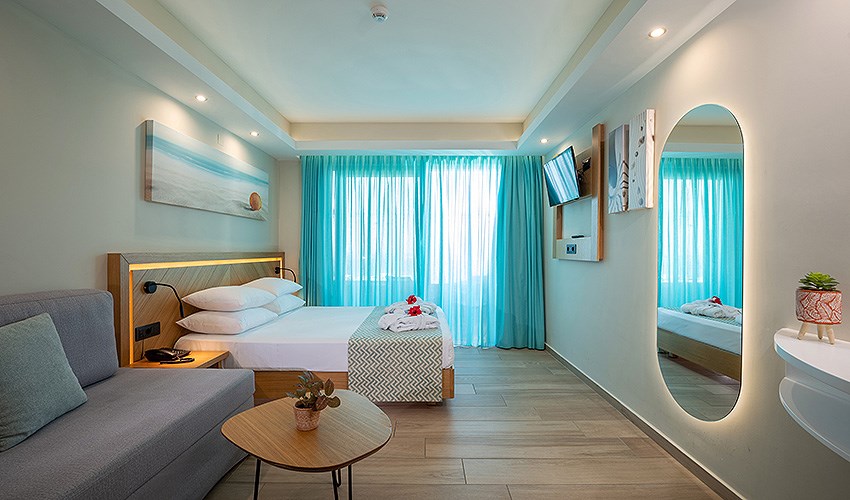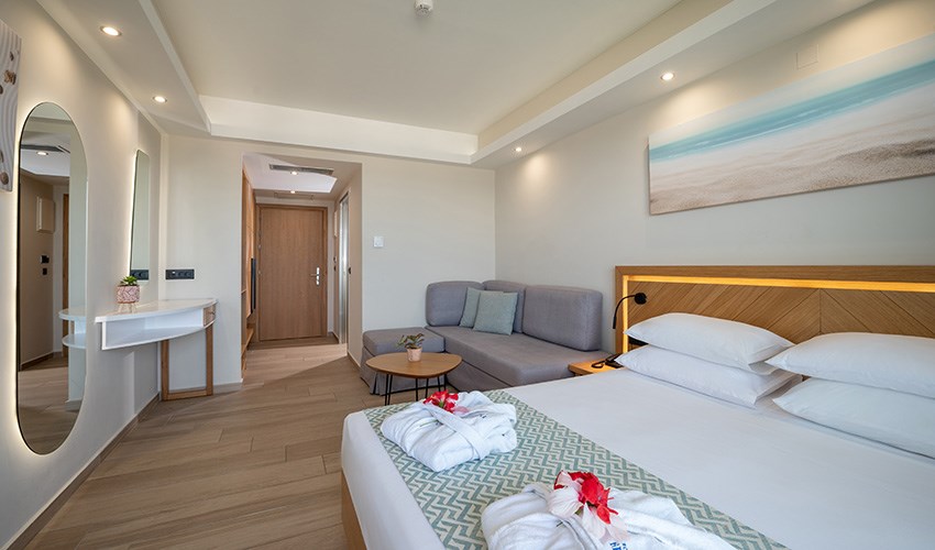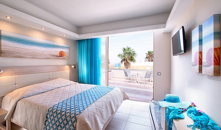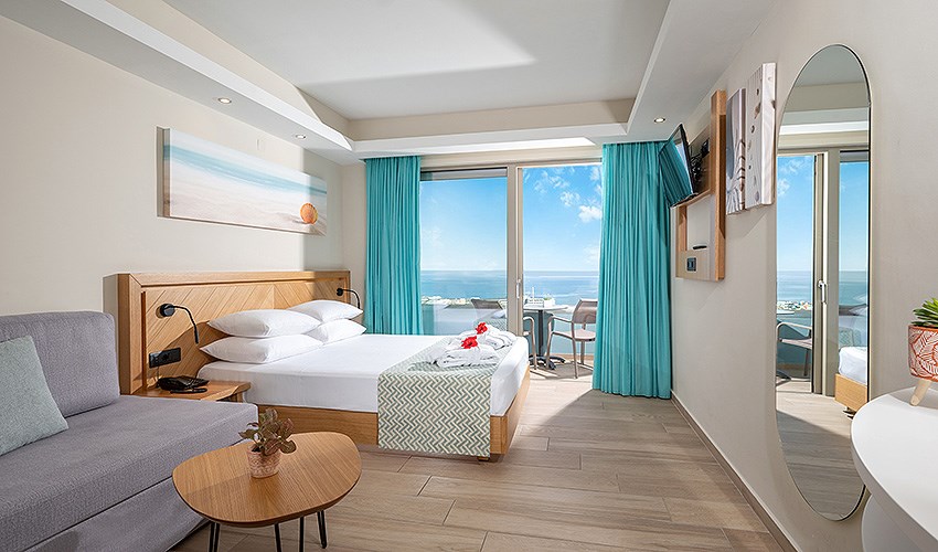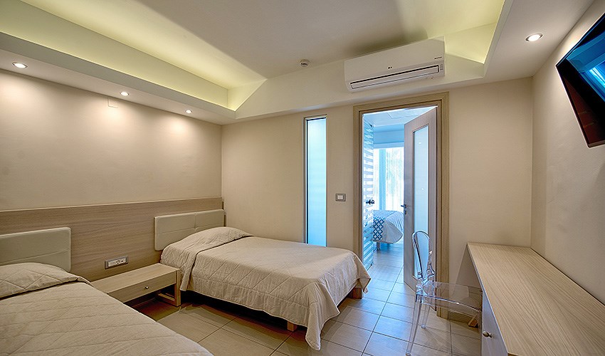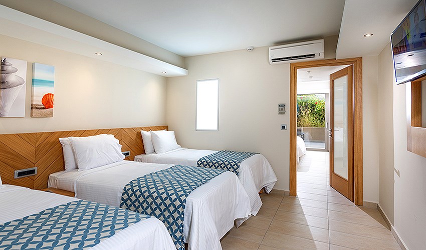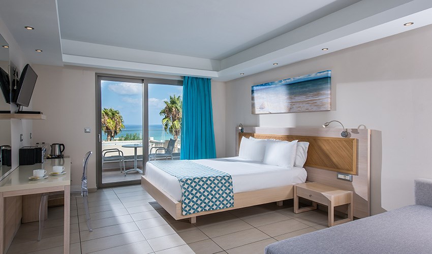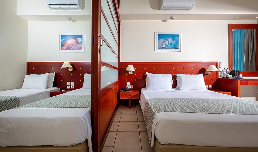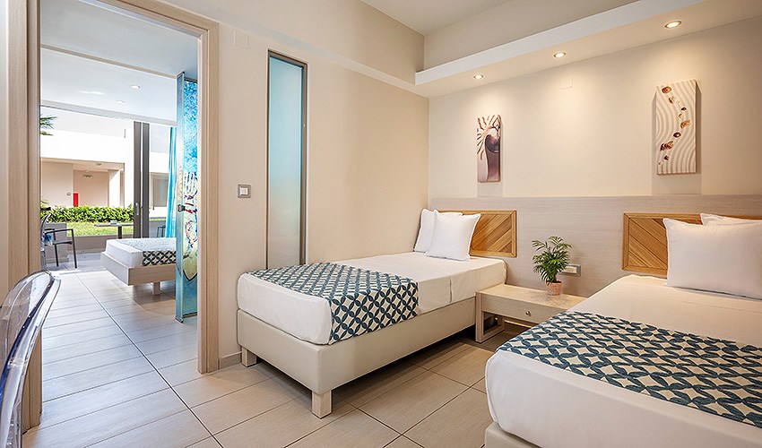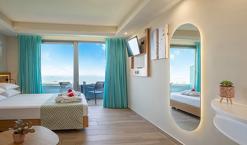 rodinné pokoje až pro 4 osoby s výhledem na moře (2 místnosti)