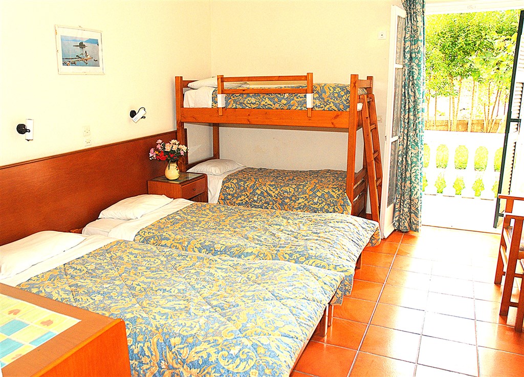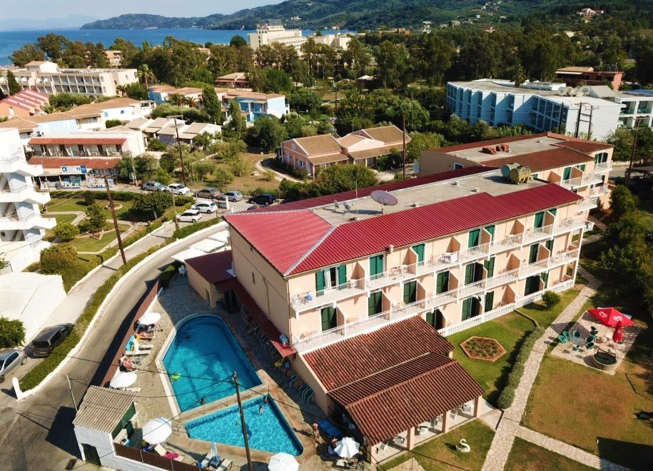 Rodinný hotel s příjemnou polohou a tradiční řeckou atmosférou. Poloha: Ubytování má ideální polohu cca 100 m od hlavní pláže a cca 200 m od hlavní třídy, která je obchodním centrem letoviska. V blízkosti hotelu jsou obchody, restaurace přímo na pobřeží, kavárna, supermarkety, půjčovny a večerní zábava (např. jeden z nejoblíbenějších podniků na Korfu, Golden Beach koktejl bar). Cca 20 km jižně od hlavního města. Pláž: Místní dlouhá písečná pláž s pozvolným vstupem do moře je vhodná pro všechny věkové kategorie, včetně rodin s malými dětmi. Vybavení: Vybavení: Vstupní hala s recepcí, restaurace, bar, bazén, dětský bazén, dětské hřiště, WiFi v celém hotelu, slunečníky a lehátka u bazénu. Slunečníky, lehátka a vodní sporty na pláži jsou za poplatek. Celý popis