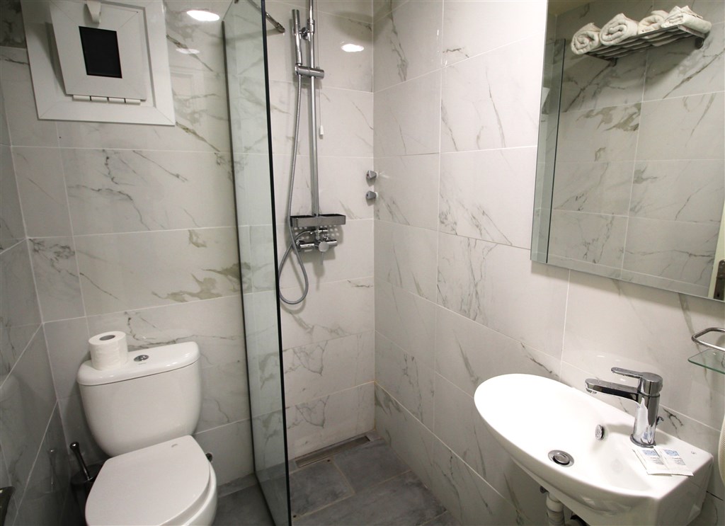 Popis pokojů: Dvoulůžkové pokoje s možností jedné přistýlky nebo rodinné pokoje (patrová postel) mají vlastní koupelnu (WC, sprcha), balkon s výhledem do zahrady či terasu, v ceně je také malá lednice, SAT TV, fén, wifi, individuální klimatizace a trezor.