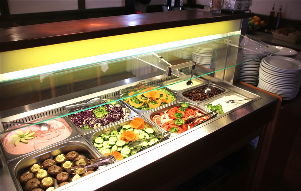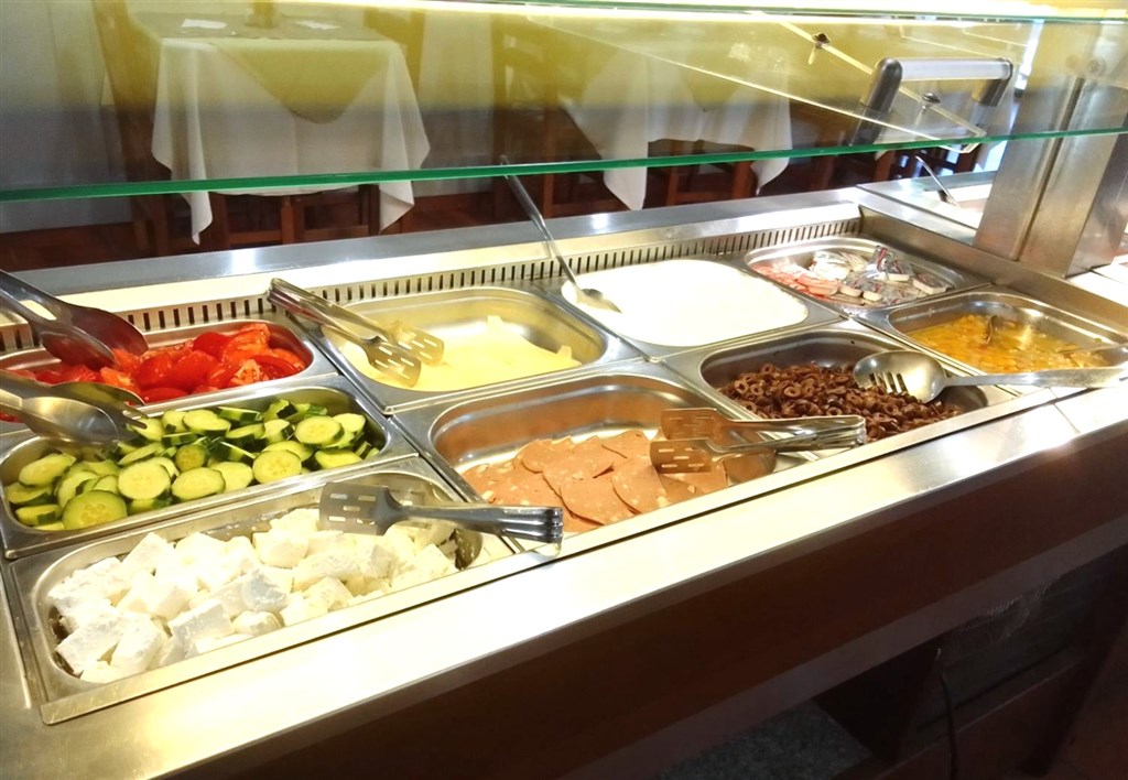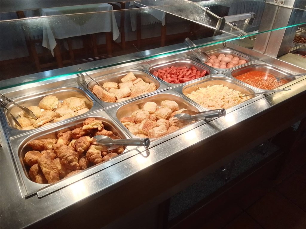 Snídaně nebo polopenze, snídaně i večeře jsou podávány formou bufetu v hotelové restauraci.