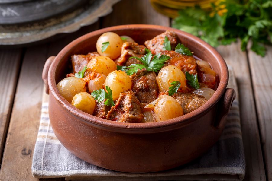 Dát si můžeme například jedno z nejtypičtějších jídel , a to stifado . Základ tvoří maso, nejčastěji hovězí nebo telecí. Maso se pomalu dusí společně s množstvím malých perlových cibulek, rajčat, červeného vína, olivového oleje a směsi koření. Díky dlouhé pomalé přípravě je maso velmi jemné a šťavnaté.