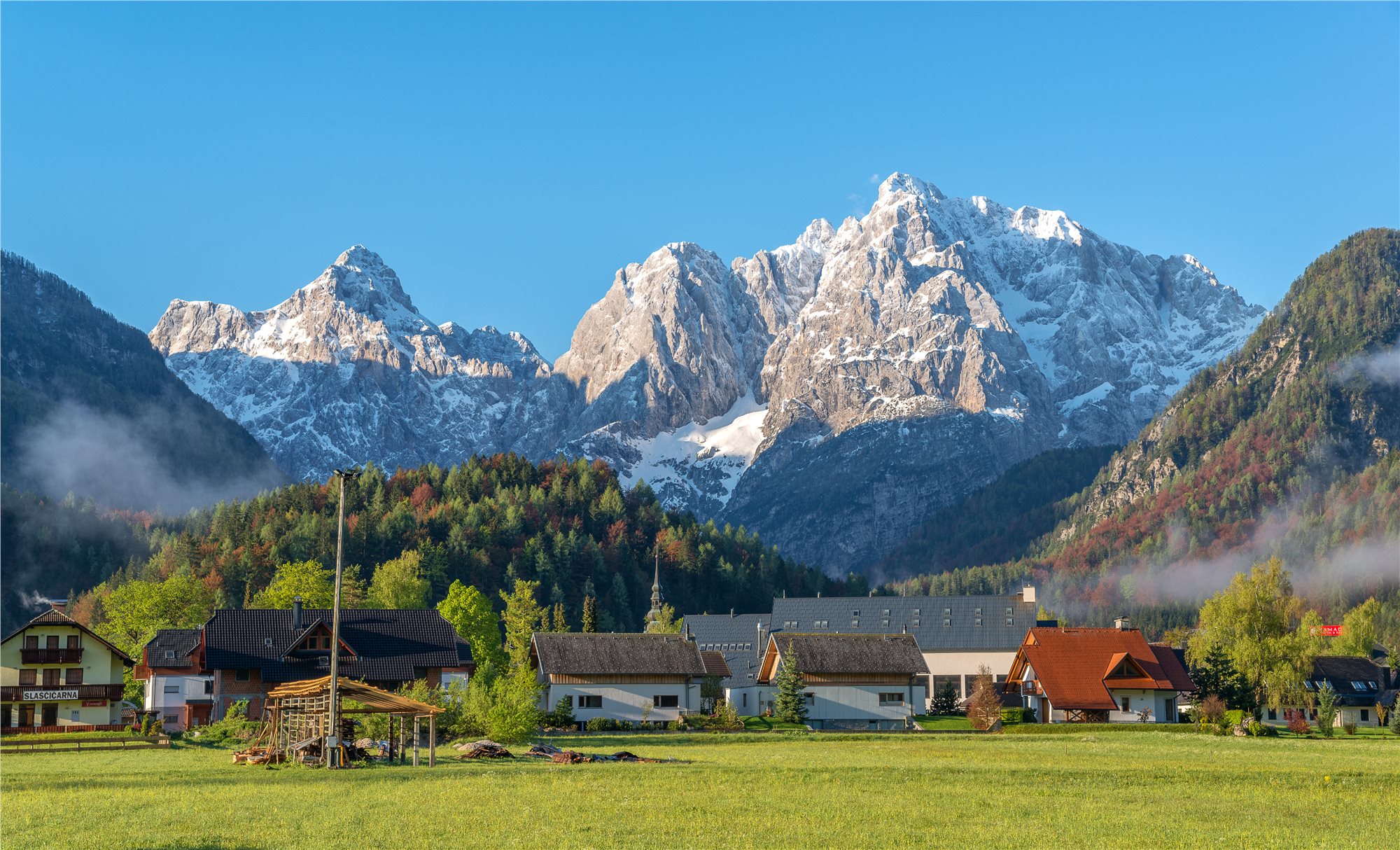 2. den: příjezd do KRANJSKE GORY (810 m), dopolední snídaně, ubytování dle možností hotelu. Později dopoledne od hotelu projedeme světoznámé slovinské lyžařské středisko KRANJSKA GORA s malebným jezerem JASNA a jeho slavnou sochou ZLATOGORA. Od jezera pokračujeme po ALPE ADRIA TRAIL podél potoka PIŠNICA až k velmi zajímavé RUSKÉ KAPELICI. Odtud jen pak sjezd zpátky do hotelu (celkem 25 km). Možnost prodloužení o výstup do sedla Vršič (1611 m.n.m.). Večeře.