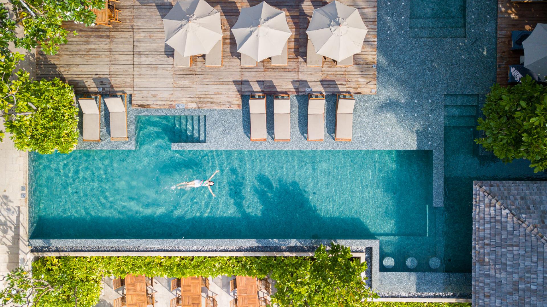 ZÁBAVA A SPORT: bazén s panoramatickým výhledem a sluneční terasou, dětský bazének, thajské masáže, fitness centrum, na pláži různé druhy vodních sportů.