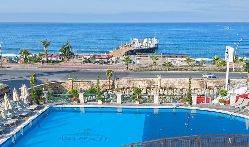 Nový moderní hotel Asia Beach postavený v orientálním stylu se nachází v letovisku Alanya – Oba, nejbližší nákupní možnosti, restaurace a bary jsou vzdálené cca 300 m od hotelu, centrum Alanye 3 km, autobusová zastávka 10 m od hotelu. Privátní písečná pláž s pozvolným vstupem do moře je vzdálená 30 m od hotelu a je oddělena místní komunikací (možno využít podchod). Doporučujeme všem věkovým kategoriím, kteří vyhledávají hotel v klidné části letoviska s velkým vyžitím pro děti i dospělé. Vybavení: vstupní hala s recepcí, Wi-Fi ve společných prostorách zdarma, výtah minimarket, obchůdky, kadeřnictví několik restaurací, 2 A´la carte restaurace, bary, bar na pláži bazén, dětský bazén, bazén se 3 skluzavkami (lehátka a slunečníky u bazénů i na pláži zdarma), vnitřní bazén, sluneční terasa animační programy, miniklub, diskotéka, kino stolní tenis, volejbal, squash, fitness, turecké lázně, sauna za poplatek: billiard, bowling, masáže, vodní... Celý popis